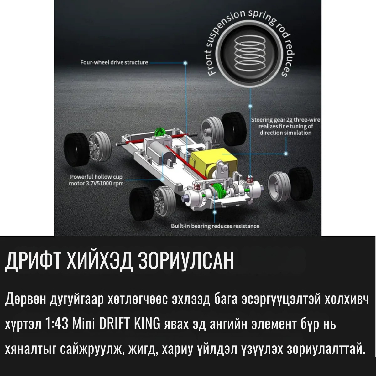 - 4WD: Дөрвөн дугуйгаар хөтөлдөг системтэй бөгөөд хүчтэй болон дрифт хийхэд амархан болгож өгдөг.