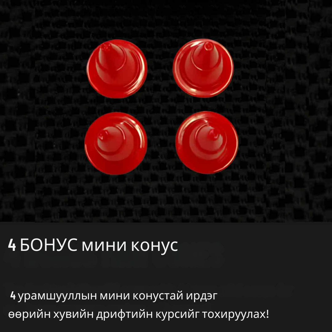 - Нэмэлт дагалдах хэрэгсэл: Өөрийн хүссэн хашлага хийж тохируулаж тоглох 4 мини конус дагалдана.